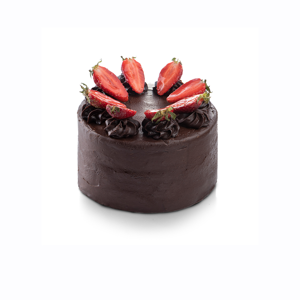 Our fudgy chocolate cake is our very chocolatey chocolate cake. Belgian 60% dark chocolate-based cake with dense brownie sponge and creamy dark chocolate ganache, the top is decorated with fresh strawberries. Not bitter, not too sweet, we recommend it to those who like dark chocolate.