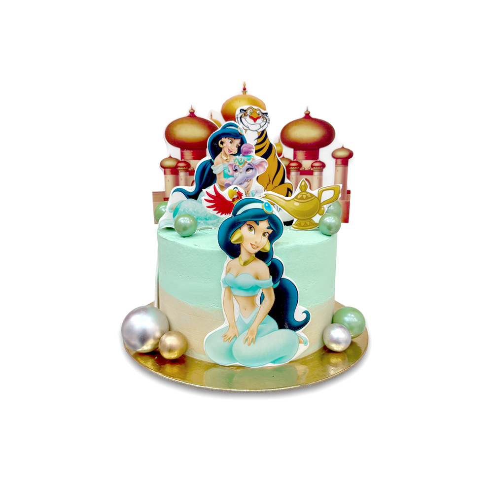 Ez a Jázmin hercegnős születésnapi torta finom pasztellszíneivel és mesebeli hangulatával az ünneplés egyik legszebb központi eleme. A mentazöld és krémszínű bevonatot dekoratív hungarocell gömbök és látványos beszúrók egészítik ki, a torta elején pedig az elegáns Jázmin hercegnő kapott helyet. Tökéletes választás gyerekzsúrokra és születésnapi ünnepségekre, ahol a mesevilág és a különleges megjelenés kerül a középpontba.
